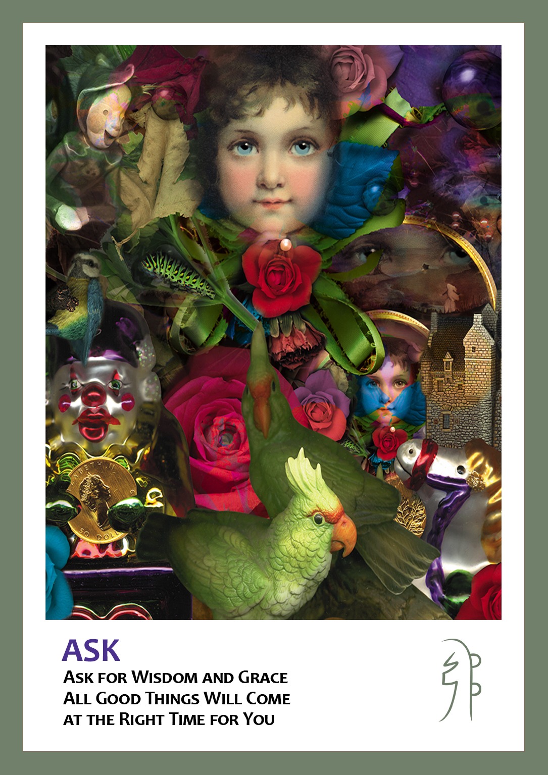60 Reiki Tarot Cards w/Quartz and Amethyst Crystal and embroidered Lotus Bag (Press the card image to see another card!)